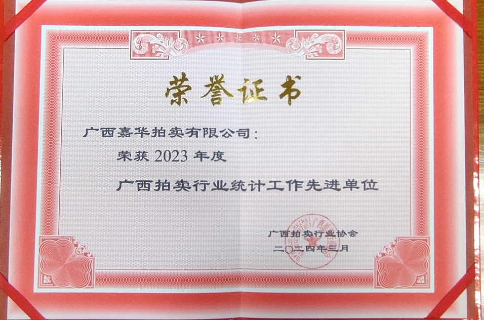 2023年廣西拍賣行業(yè)統(tǒng)計(jì)工作先進(jìn)單位 -