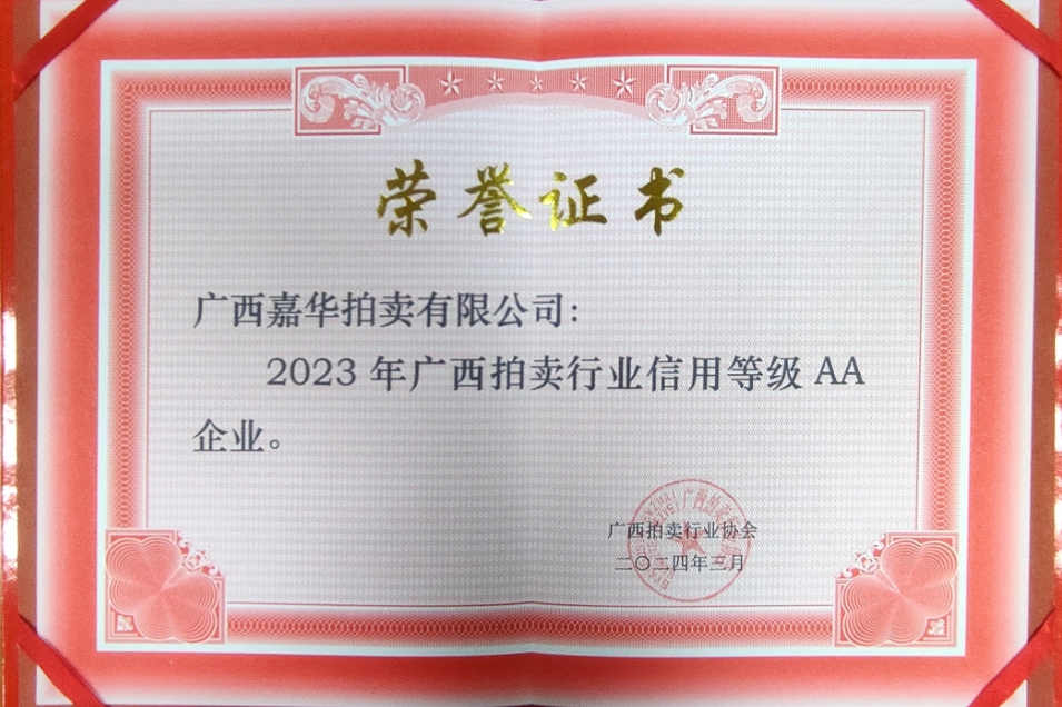 廣西拍賣行業(yè)信用等級AA企業(yè) -